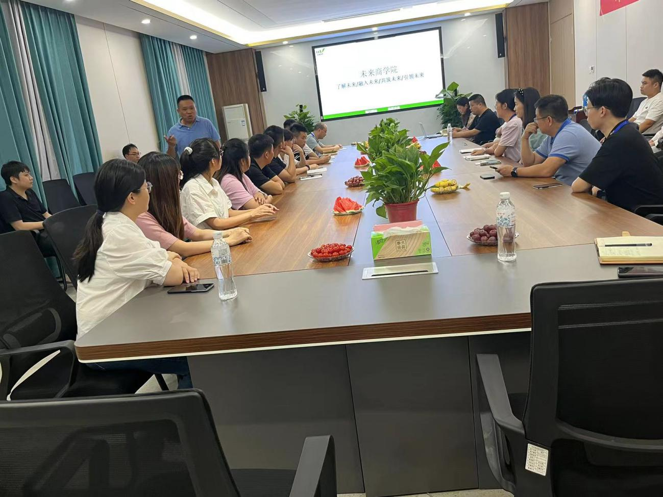 为促进新员工快速融入公司,搭建沟通交流平台,营造良好的文化氛围,进一步增强新员工的归属感,2023年7月28日,公司人力资源管理运营中心组织开展了“遇见未来*预见美好未来”为主题的新入职员工座谈会,邀请公司董事长赵立军先生和药品营销控制管理中心总经理王有军先生共同参加此次座谈会,一起欢迎29位新同事的到来,祝贺他们选择未来,加入未来,成为未来大家庭的一员。