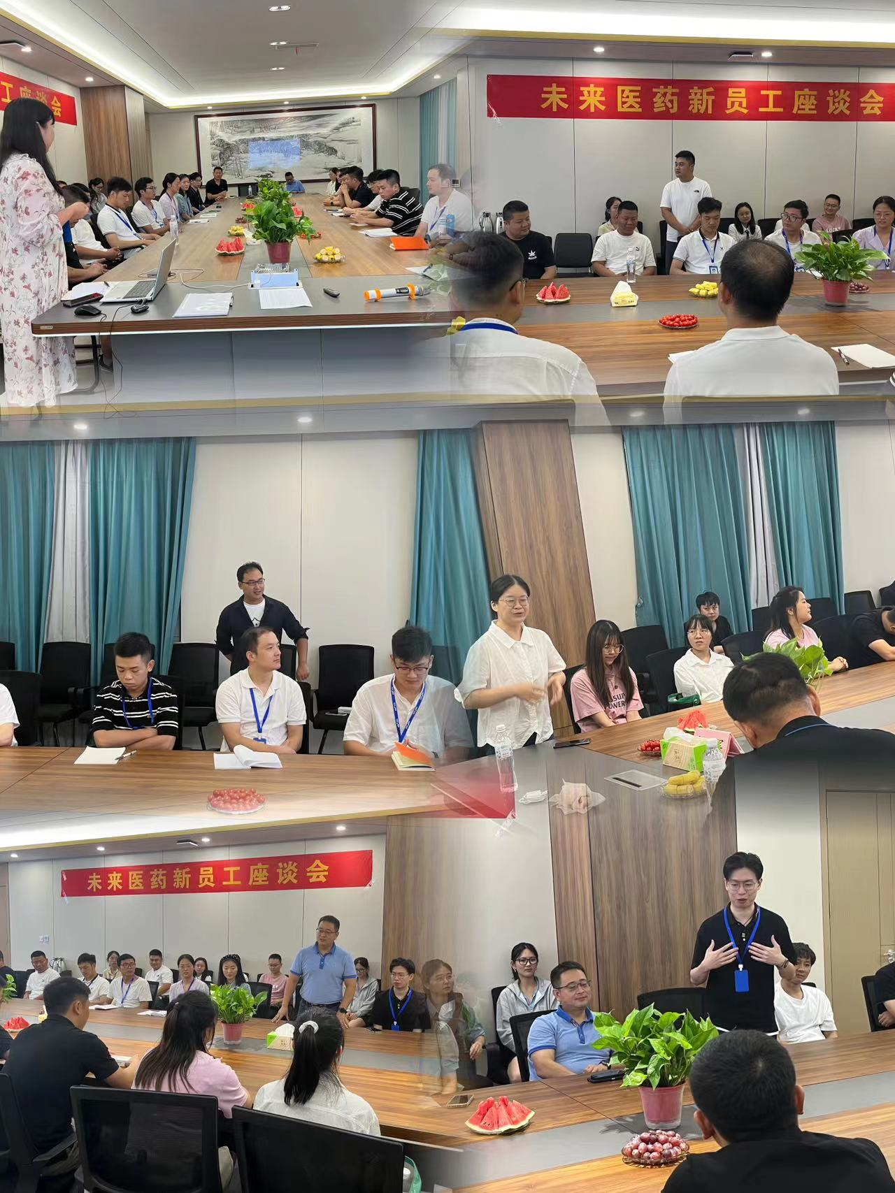 会上,赵总用亲身经历讲述了自己创办未来医药的征程,从自身的经验分享几点建议给到在座新同事一起共勉:1、勇敢接受挑战,勇敢迈出第一步,年轻人要有敢闯敢为的精神;2、时刻保持谦虚好学的态度;3、在工作中难免遇到各种挑战与困难,要有良好的心态勇于面对,想方设法解决困难。赵总以“接受挑战”、“谦虚好学”、“良好心态”等三个方面进行交流,并希望通过他的工作经历能给到新员工一定的启发,在今后的工作和生活中有一定的帮助与指导。